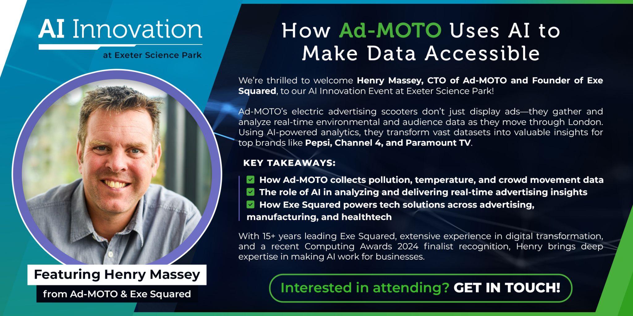 We’re really excited to to announce that Henry will be talking at the AI Innovation event at Exeter Science Park next Wednesday.